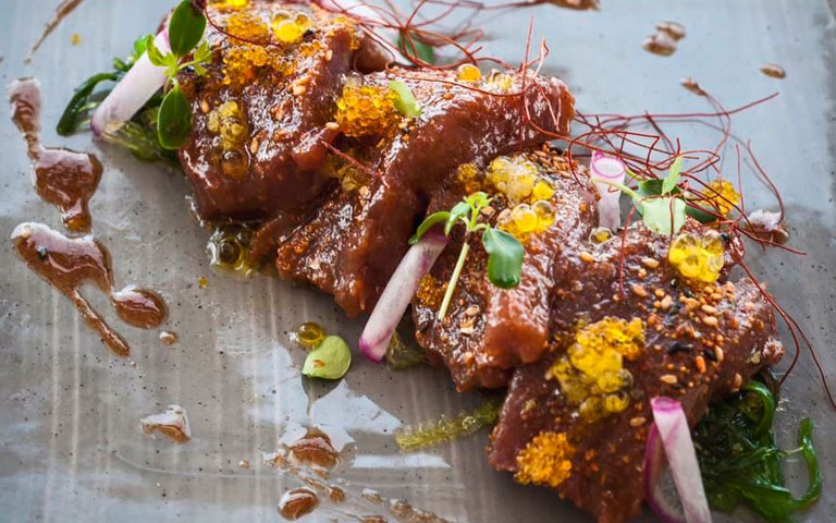 Una mezcla de cocina internacional y tradicional con predominio de pescados y mariscos del día y donde no falta el atún rojo. Un restaurante que apuesta por el slow-food, cocinando con productos cercanos a su entorno y también por los súper alimentos, con los que ofrecen platos sanos y saludables. Muy sensibles a las opciones vegetarianas, también cuenta con una gran variedad de platos sin proteína animal. Razones suficientes para ser distinguido con el premio GURMÉ Cádiz 2016, otorgado por votación popular al mejor restaurante de cocina creativa, además de diversos premios en rutas y concursos gastronómicos.